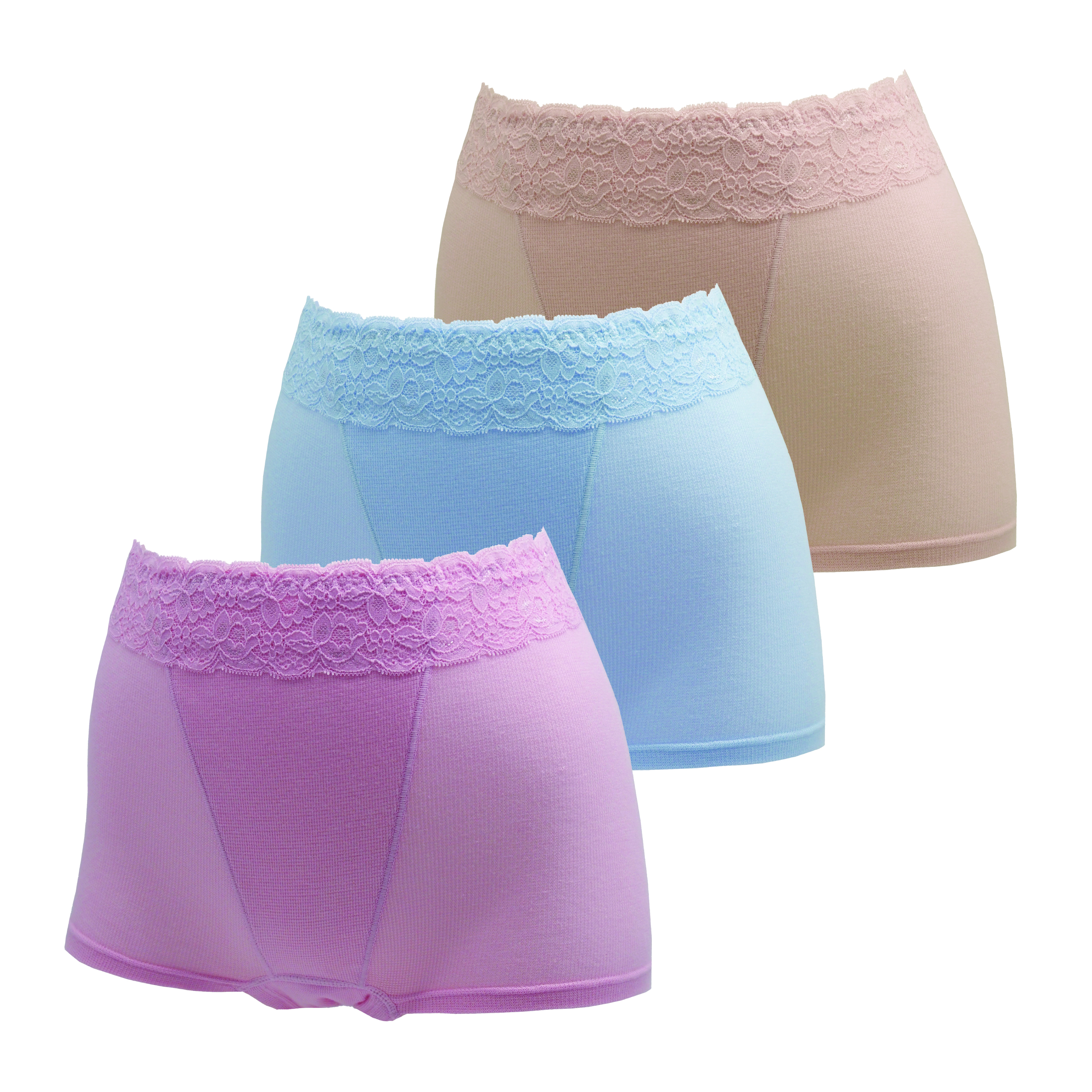 レディース吸水消臭ショーツ レース付のデザインは普通のショーツと見た目は変わりません。パワーネットでお腹をしっかり押さえる。 |